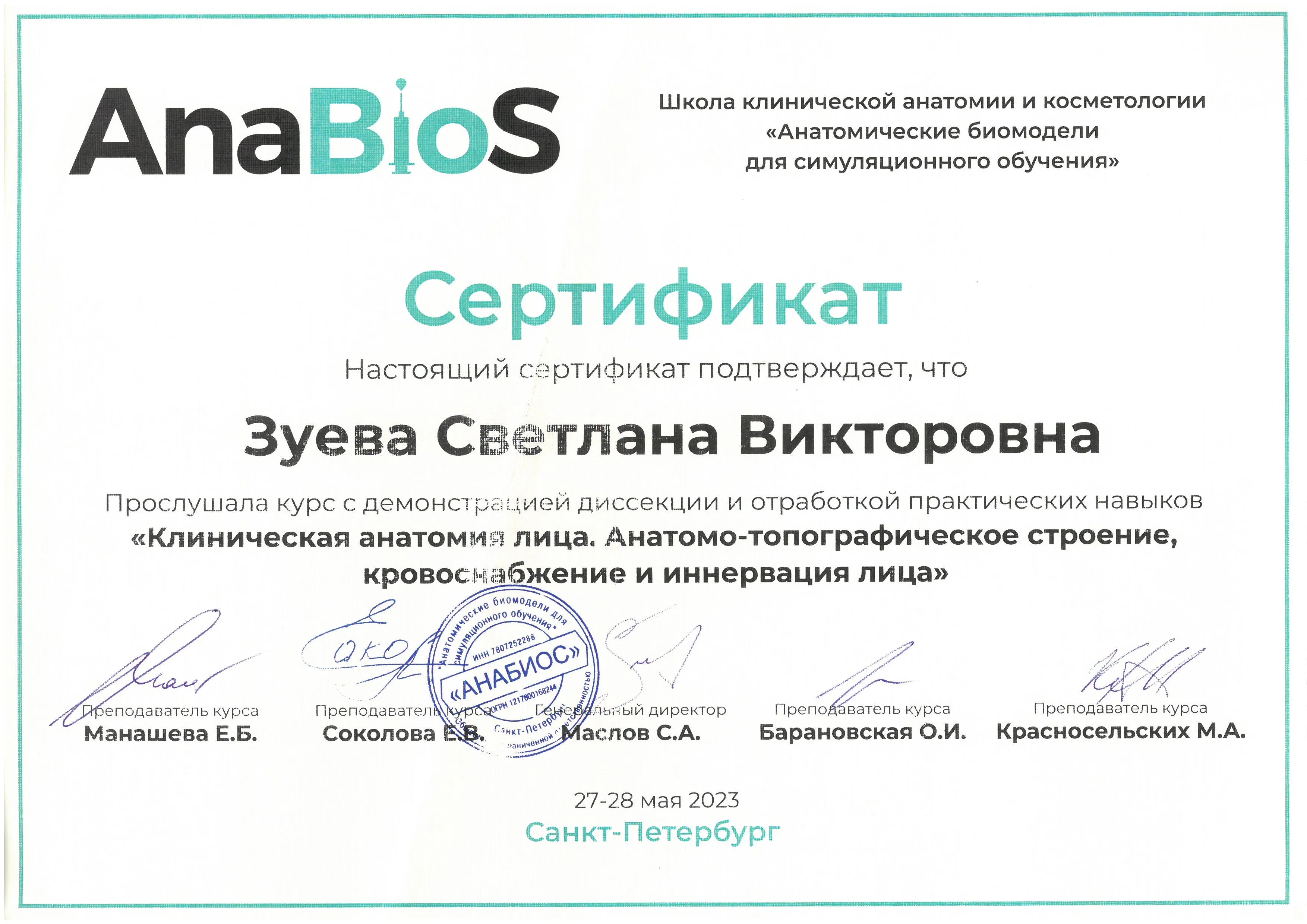 Курс с демонстрацией диссекции и отработкой навыков "Клиническая анатомия лица. Анатомо-топографическое строение, кровоснабжение и иннервация лица" | AnnaBioS
