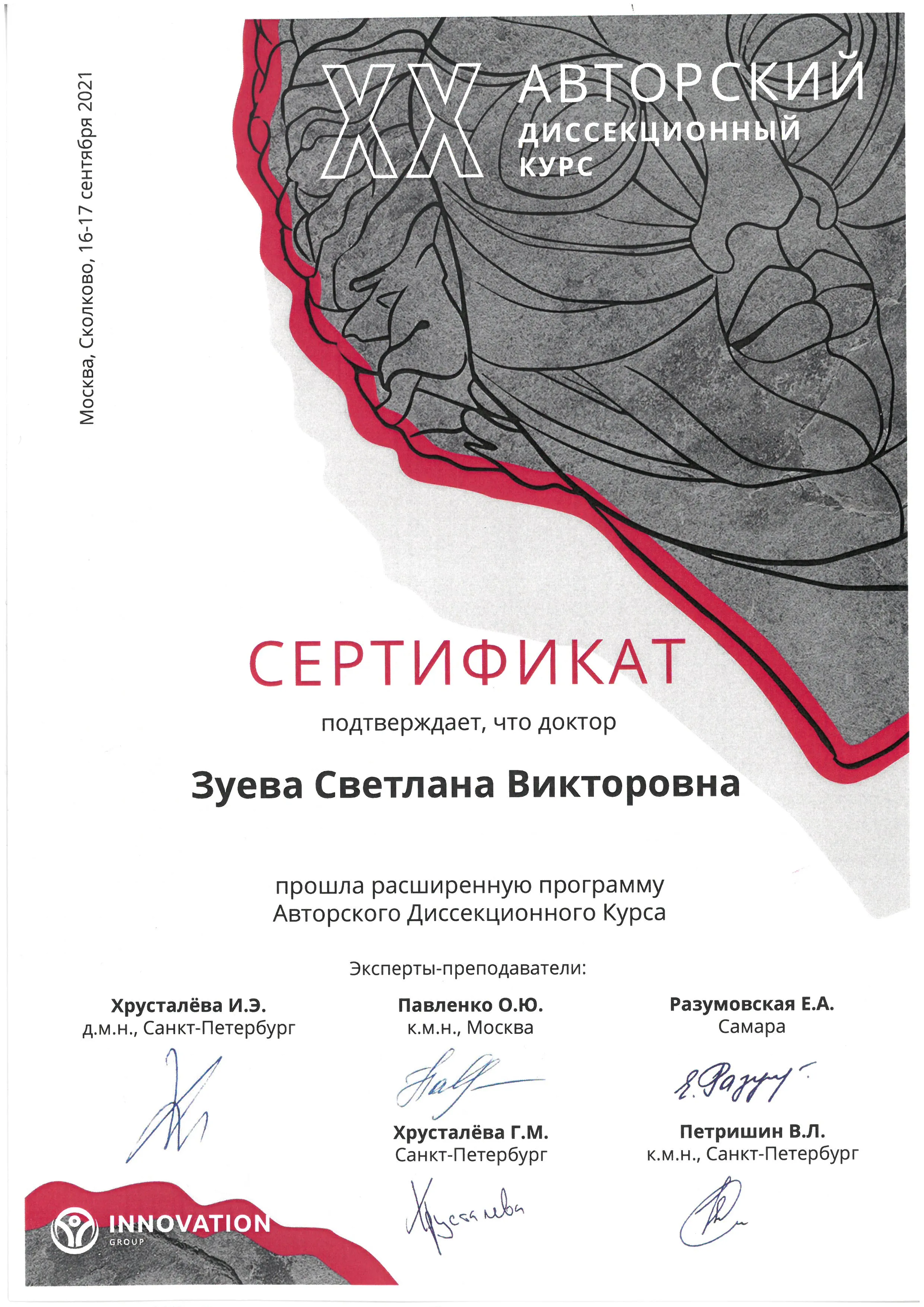 Расширенная программа авторского Диссекционного курса | INNOVATION GROUP (эксперты Хрусателева И.Э., Павленко О.Ю., Разумовская Е.А.)
